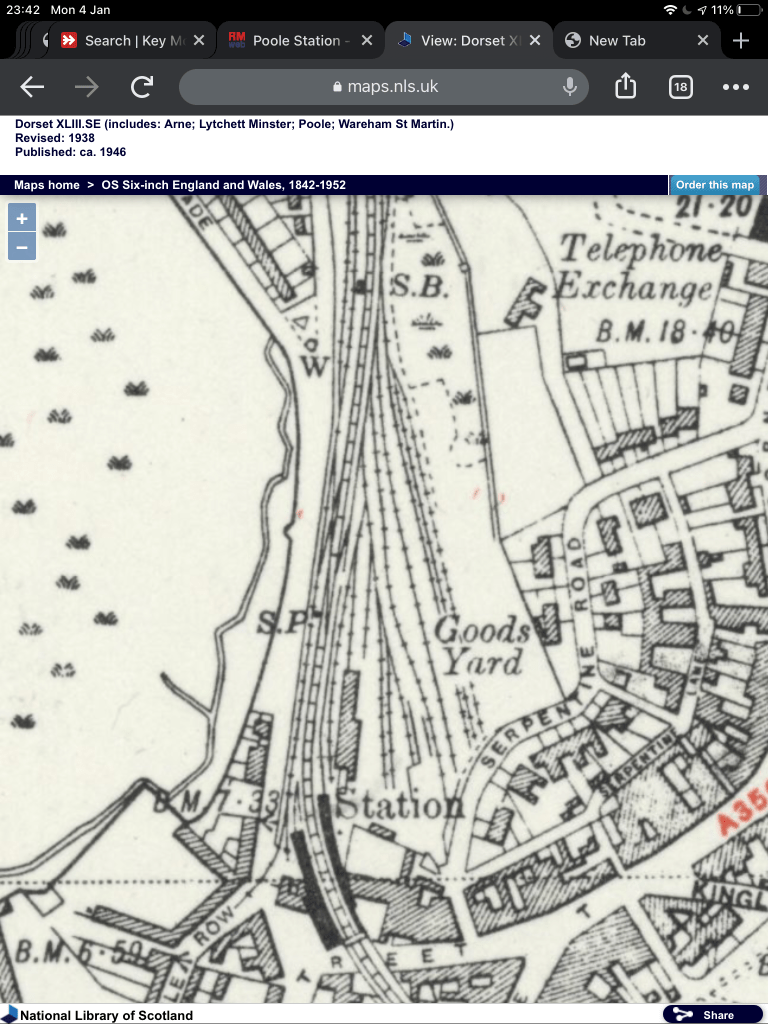 The Period to model has been a bit more of a challenge, Poole station has moved once around the curve from the high street to the current location in I think the 1960’s and was rebuilt in a standard BR design. This was rebuilt again in the 2000’s ( I will research this in more detail once I can get to the library ) with a new glass roof/canopy. I remember the middle period which was all BR Blue Class 33’s with 4TC units, Class 47 on the Inter-regionals , was the Pines Express using Sterte sidings and few class 73 and 74’s on different things and the occasional freight working. I don’t remember the yard getting much use but may be mistaken. Between the first station moving and the end of the 1970’s the dock branch was removed and a number of buildings including the goods shed were removed. The flyover and Barclays including the multistorey were built in the 1970’s and these would feature in the backscence and hiding the Up end_ Towards Bournemouth and London, At the down end I have plotted with Holes bay junction included but this is a massive compression. I may just end at Sterte lane Road bridge and then have the returns around the back of the layout to the Nelevation.