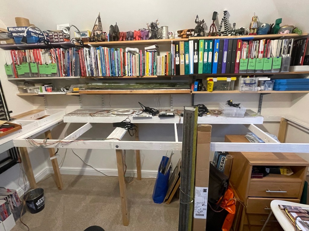 Its been a long time since I last posted but with the house move completed I’ve been starting to get settled into the new train room and have some boards up and the Nelevation (https://www.nelevation.com/) tested. Despite thinking and testing that I had the track set in the correct position on the risers I still managed to have one out of spec so have a bent track to replace but other wise all is good and have trains running through both sides in both directions. The electrical connection to the track is actually more reliable now than it was on the old layout so the time spent getting the connection right has paid off. Two pictures below of the Nellie in place and the framework for the baseboards showing. I’ll add some more pictures next time of the bus wiring and block detection wiring .