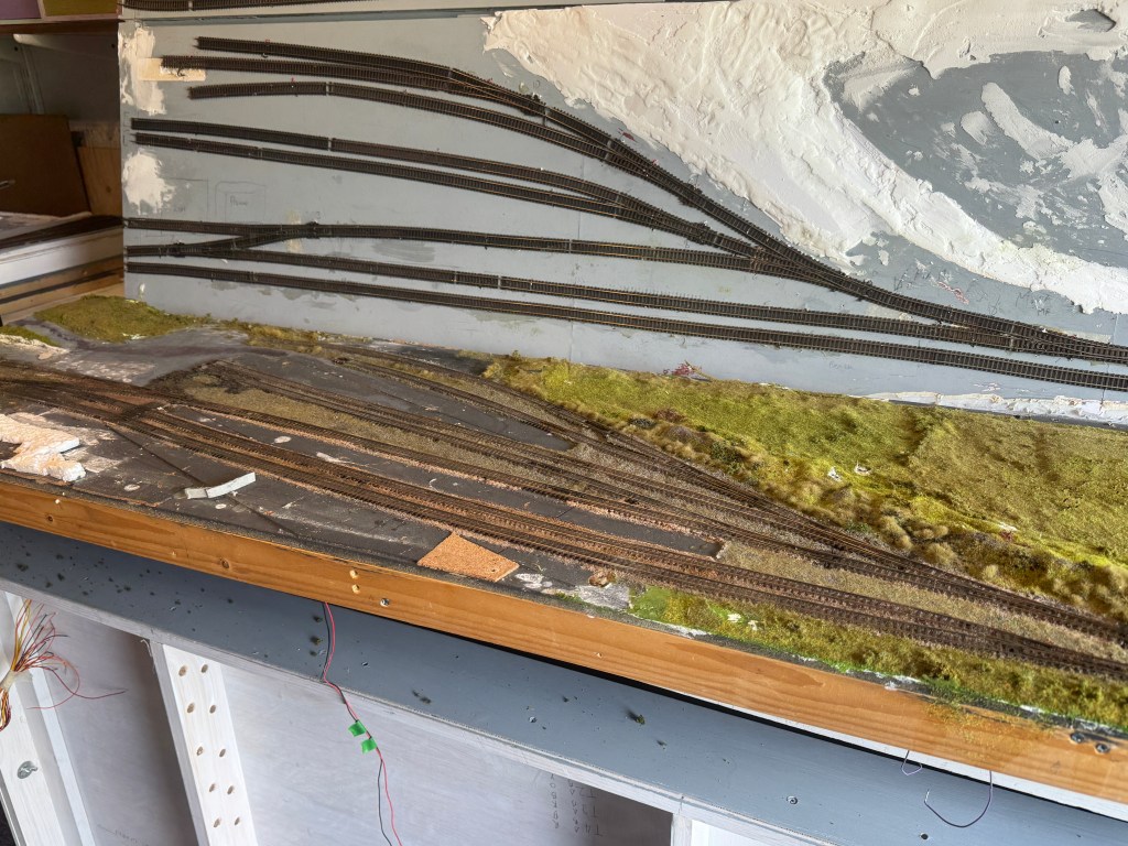 Spent the last day and a bit stripping down Sturminster Newton 1.0 for the bits that will be transferred to version 2.0 and getting the wood off that I can reuse in the future. The good news is progress on v2.O and shown in the photo below with the new board standing up behind the stripped-down old board. On the new board, I have kept the track closer to the front, which gives more space in the yard and has enabled me to fit in the 3 sidings at the back/top and the additional length, whilst not clear in this photo, is far more representative of the station than v 1.0. I found some images whilst doing this of V1.0 from 2014 and an earlier set from the first iteration, Sturminster Halt from 2013, showing it largely complete in 2013 so dating the build to 2011/12. Not a bad life for a model intended only for my study but definitely now the time for a rebuild on an exhibition-ready baseboard after at least 2 shows a year for the last 10 years.