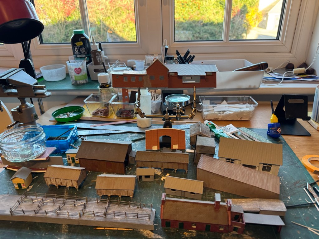 The buildings which have been in progress for a good couple of months are starting to come together now and with the test fitting before painting now in progress along with the painting of others the overall view of the layout is coming together. Fitting the corn exchange shows me that I need to get the cattle market buildings done so these are now next on the list