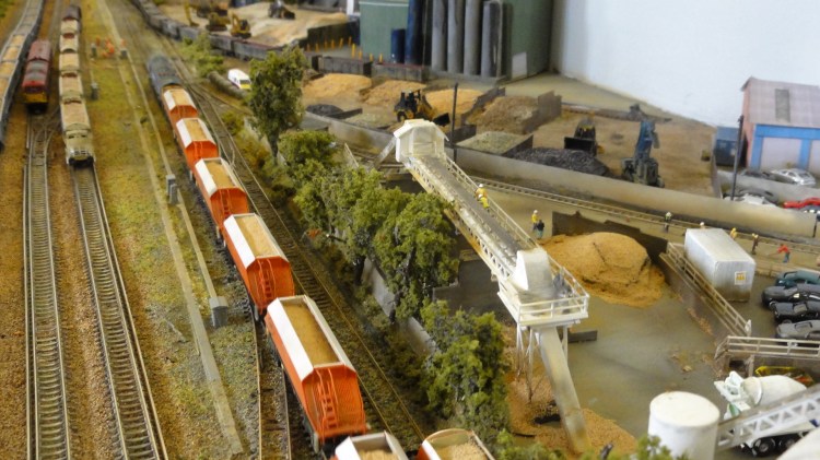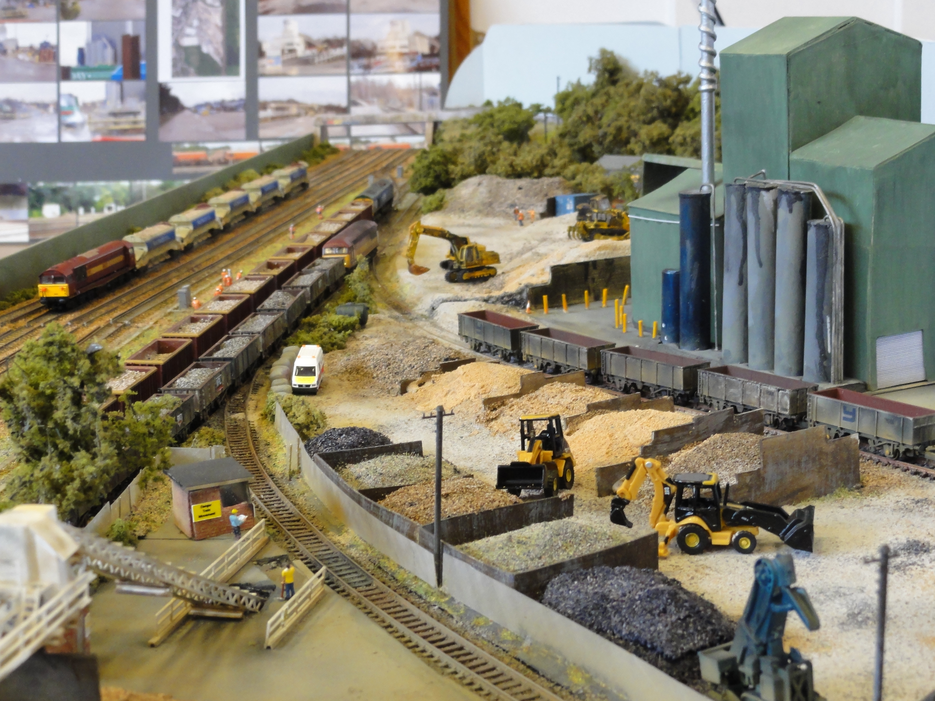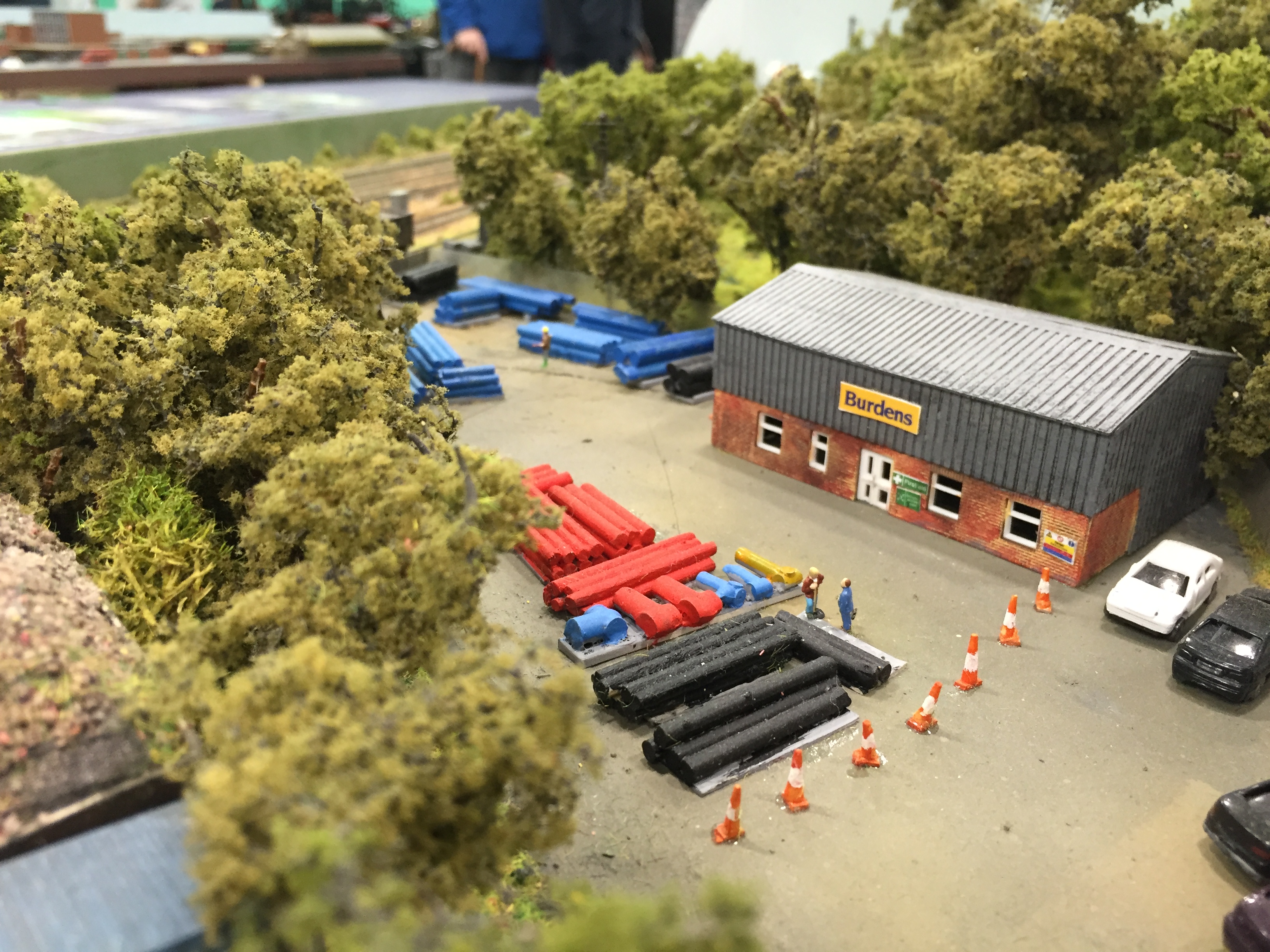 The Green blocks represent covers which will be at each end of the layout, these will be for layout information and the JMRI control PC’s. These lift up so access to the track is possible. The end of the scenic section will be the road bridge which carries the AXXX at the southern end and the Foot bridge which has been dragged south for the model . Depth remains limited so some compression on the Aggregates and cement work and more limited industrial area.