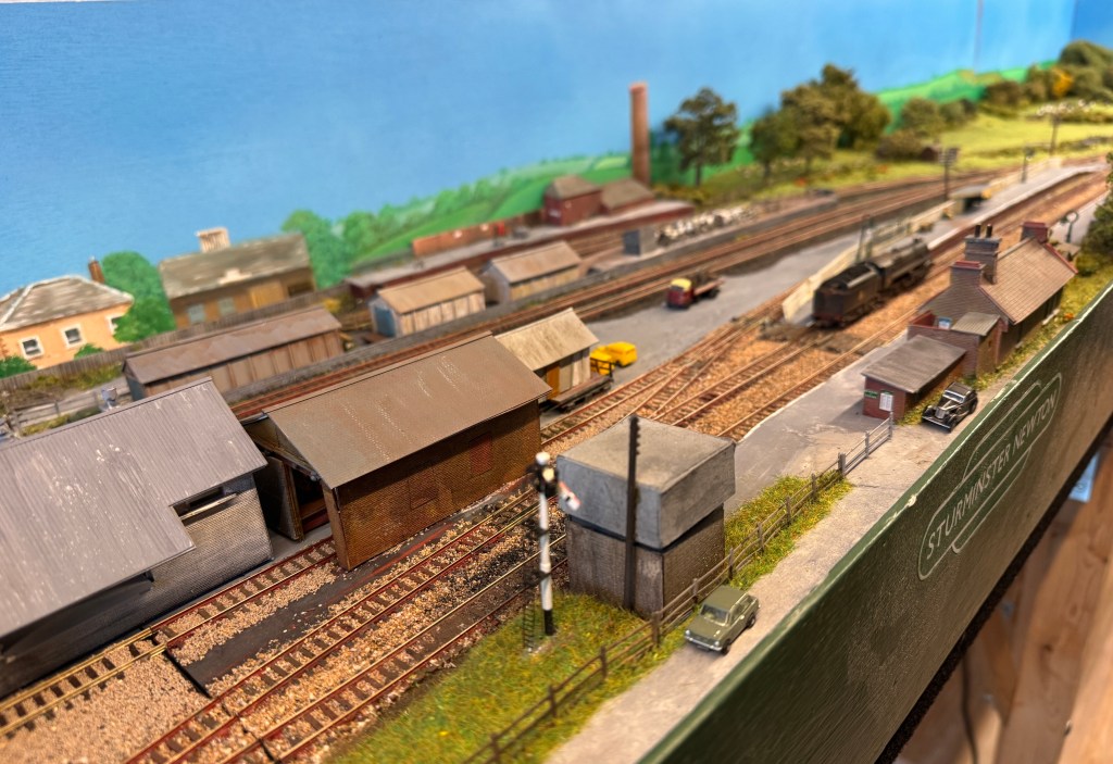 Sturminster Newton is now in its third iteration after a rebuild in 2025. The layout was originally built in 2012 for use in my study at the time. By 2015, I wanted to exhibit, but I wasn’t happy with all the elements. During 2015, I replaced the backscence, some of the buildings, and reinforced the baseboards as they weren’t designed for exhibitions. As the layout changed, I collected more research and was able to make the layout more accurate, this became v2.0 . After becoming a member of the Sturminster model railway group and helping with the OO scale model of Sturminster now in the museum, I realised that there were still some areas I could improve on with a lot more photo’s and scale drawings of many of the buildings available to use. Over the years the layout had continued to run well but the track crossings on the baseboards required fettling during setup, and some of the transitions caused a few problems from time to time so a decision was made to upgrade to V3.0