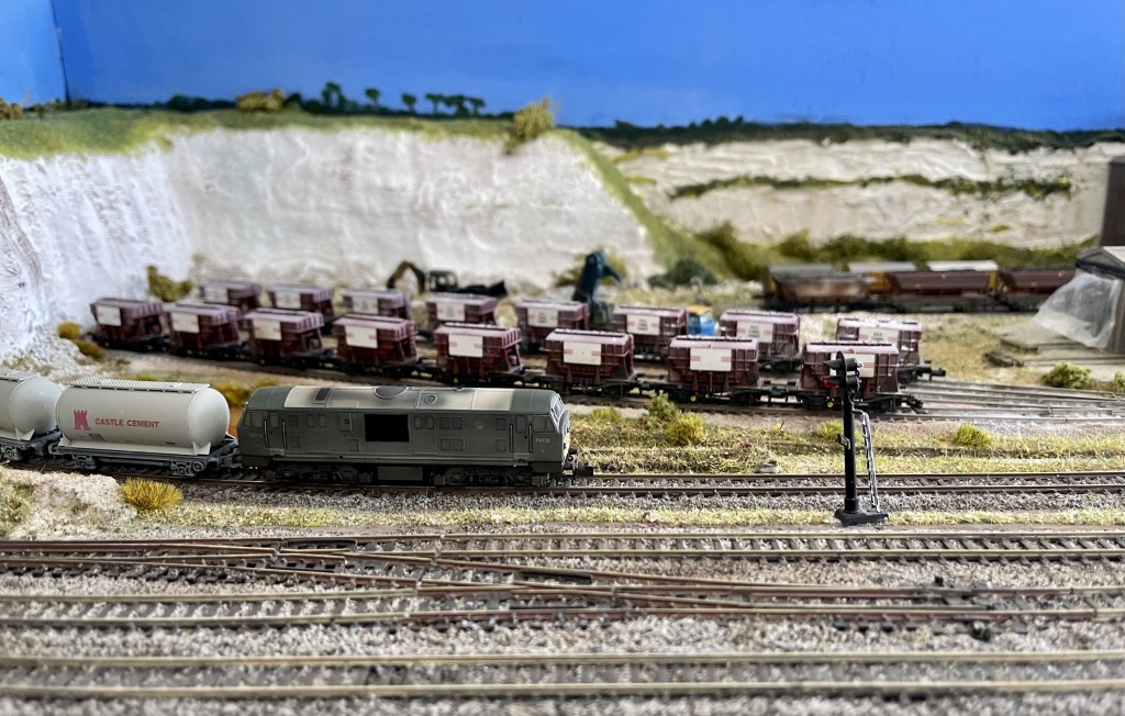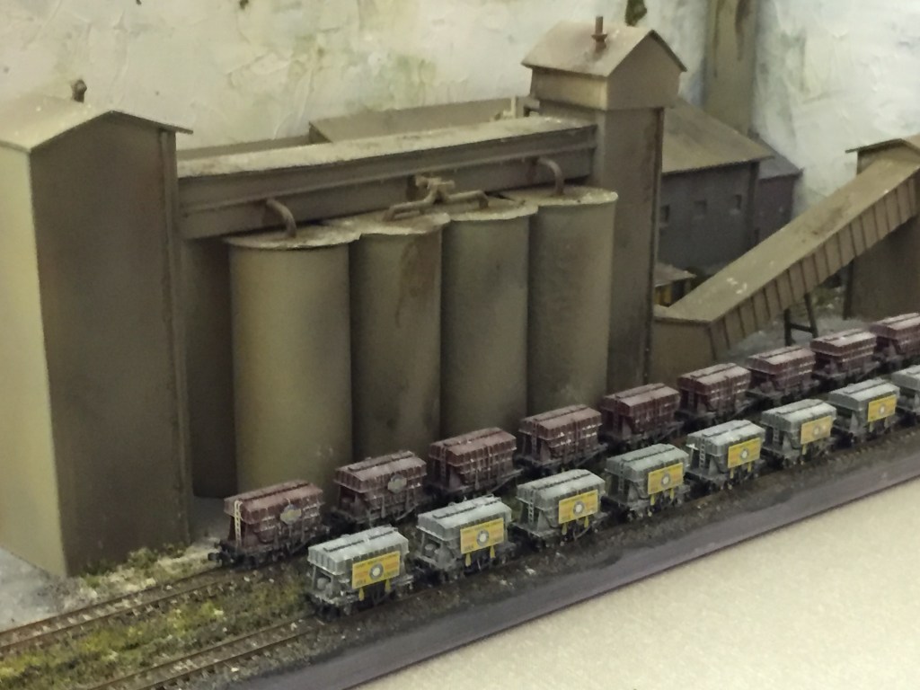 Model Rail (issue Nov 2015) provided the inspiration with Tring Sidings. Tring is on the WCML but essentially trains come up the slow line, stop, reverse over a slip and into the exchange sidings. There they decouple the engine and break van and the main line engine either picks up a new load or departs light. The cement works shunter then arrives from the works and pulls the wagons into the change over area. It stops the wagons and runs around them to then push them into the Cement Yard for filling. This is then reversed once complete. This little operation could keep one operator busy at a show and provides some real operational action and that’s what I set out to build.